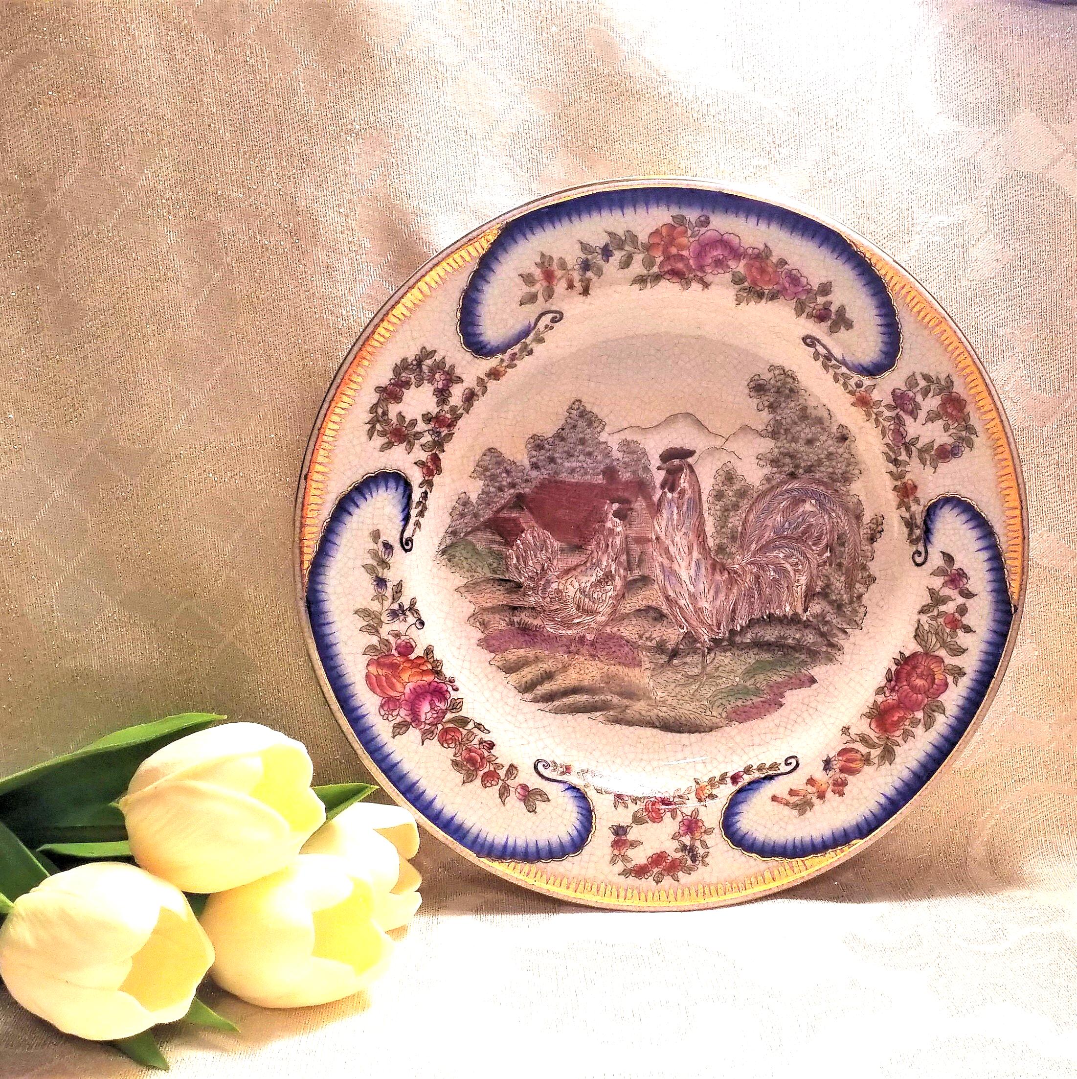 Listed for you here is a gorgeous farmhouse decor chicken plate, not intended for food use. It has holes in the back to facilitate wire insertion for hanging. This plate has a beautiful design with added details and is created with a antique glazing effect. It is hallmarked and numbered on the back. An incredible addition to your farmhouse decor. Measurements are 10 inches wide and 1 inch tall when flat. Very pretty design.