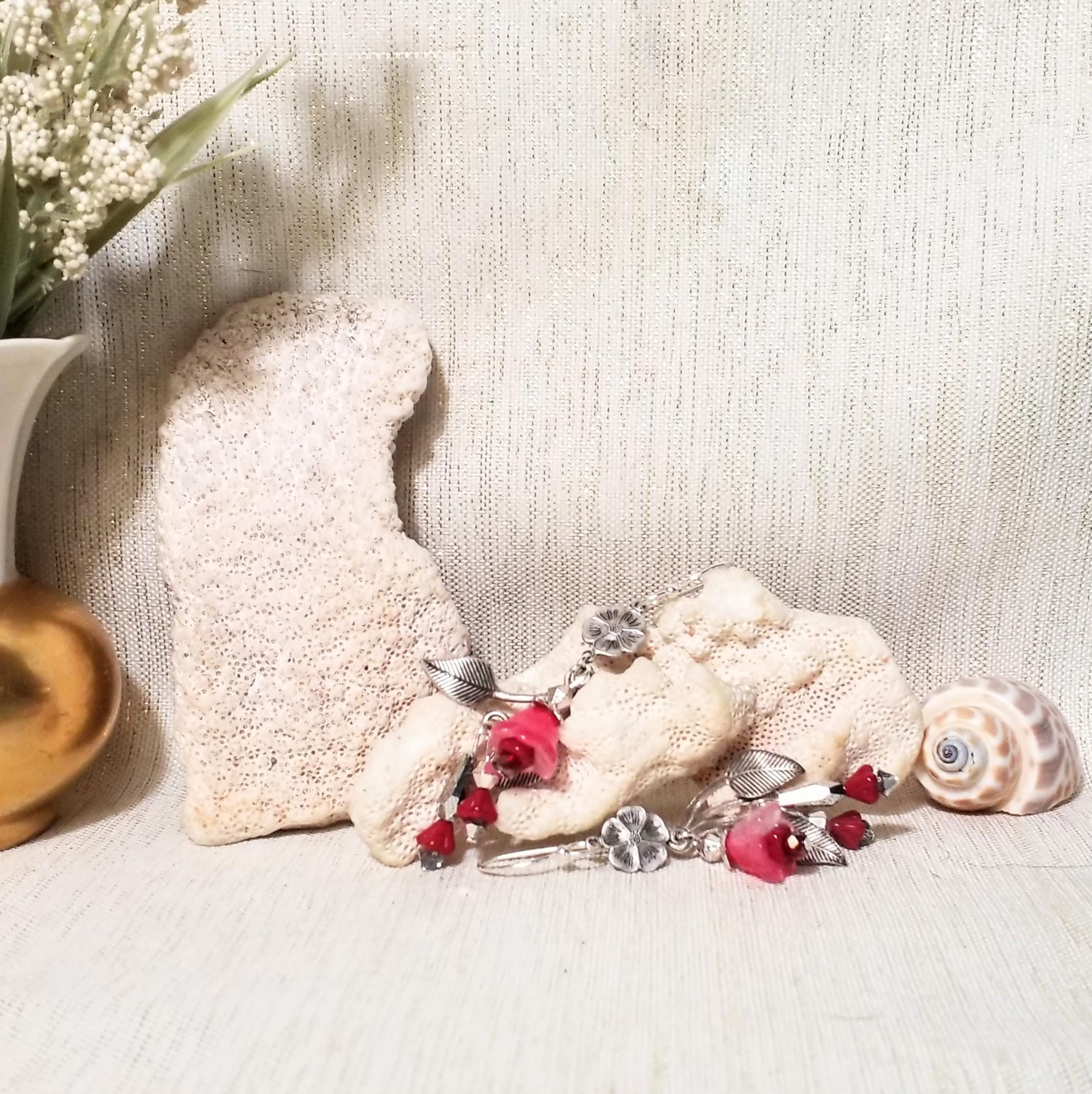 Beautiful handcrafted earrings in a pretty floral design by Carmelcollectibles.com ideal for your holiday accessories. Measurements are 2 inches long and 1 inch wide. Perfect handcrafted gift jewelry.