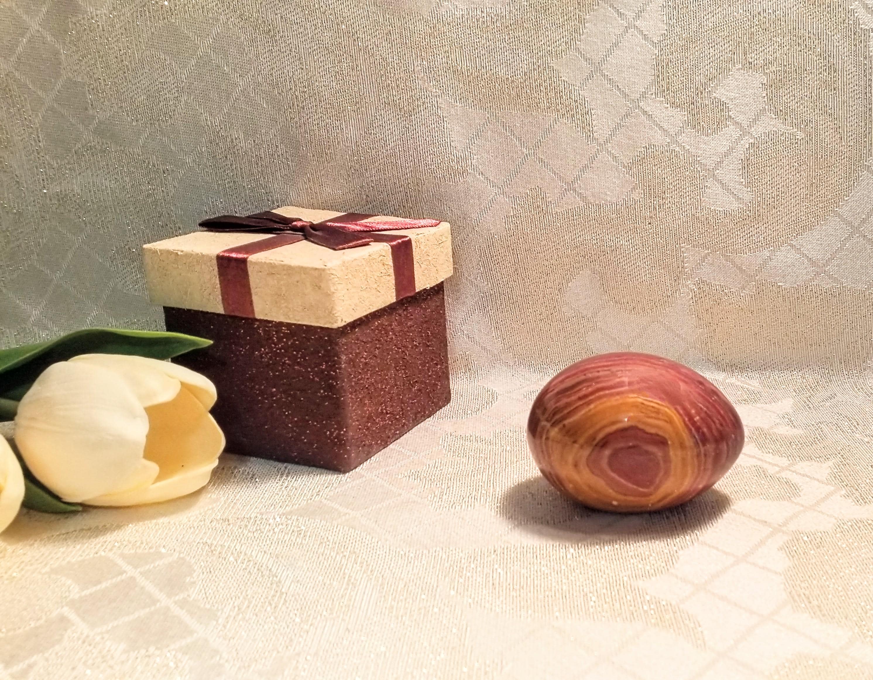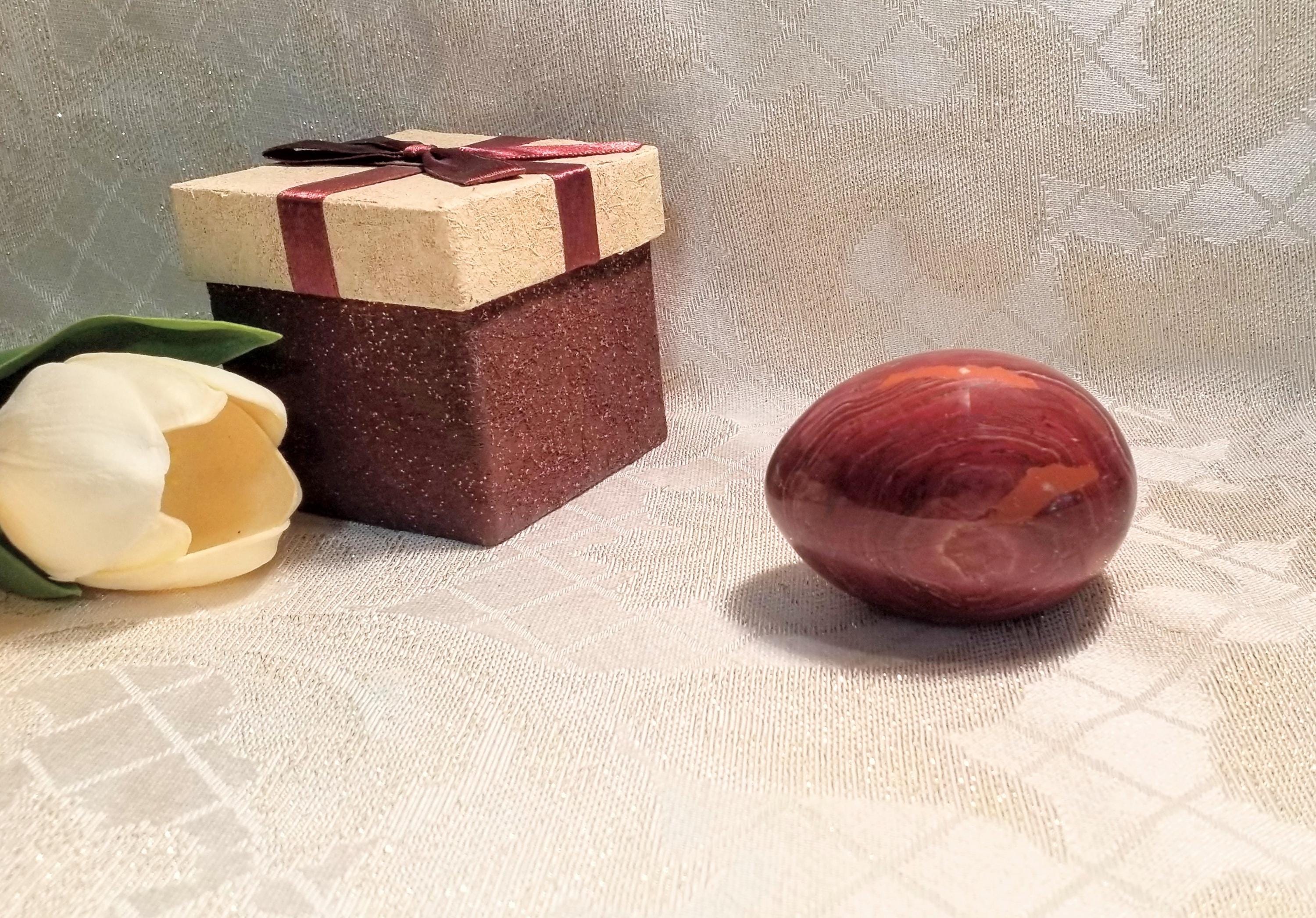 Exceptional Brown Petrified Wood Egg, with presentation box. Ideal for collector. Perfect gift. Measurements are 2 inches tall 2 3/4 inches long 2 inches wide.