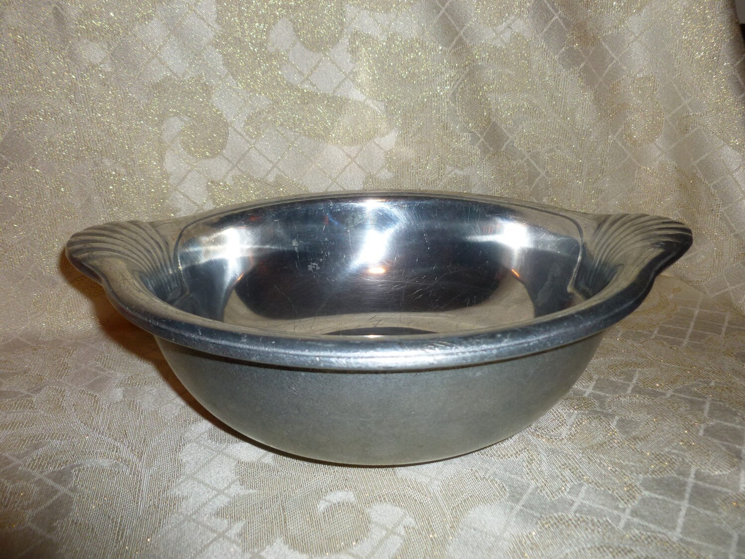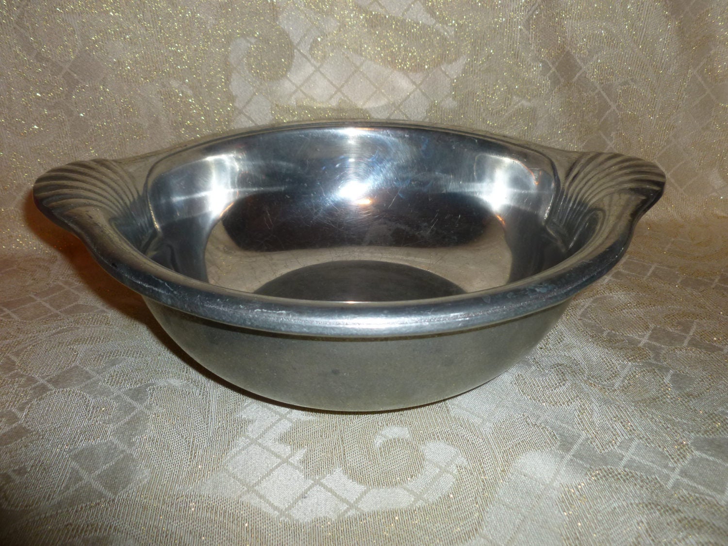 Listed for you here is an exceptional large pewter bowl crafted by the Wilton Company. Quality and fine craftsmanship are displayed in every product and this bowl is no exception. Handles add to the convenience. Easy take along for parties or a family get together, unbreakable. Measurements are 4"tall and 13"wide handle to handle. Perfect addition to your kitchenware.